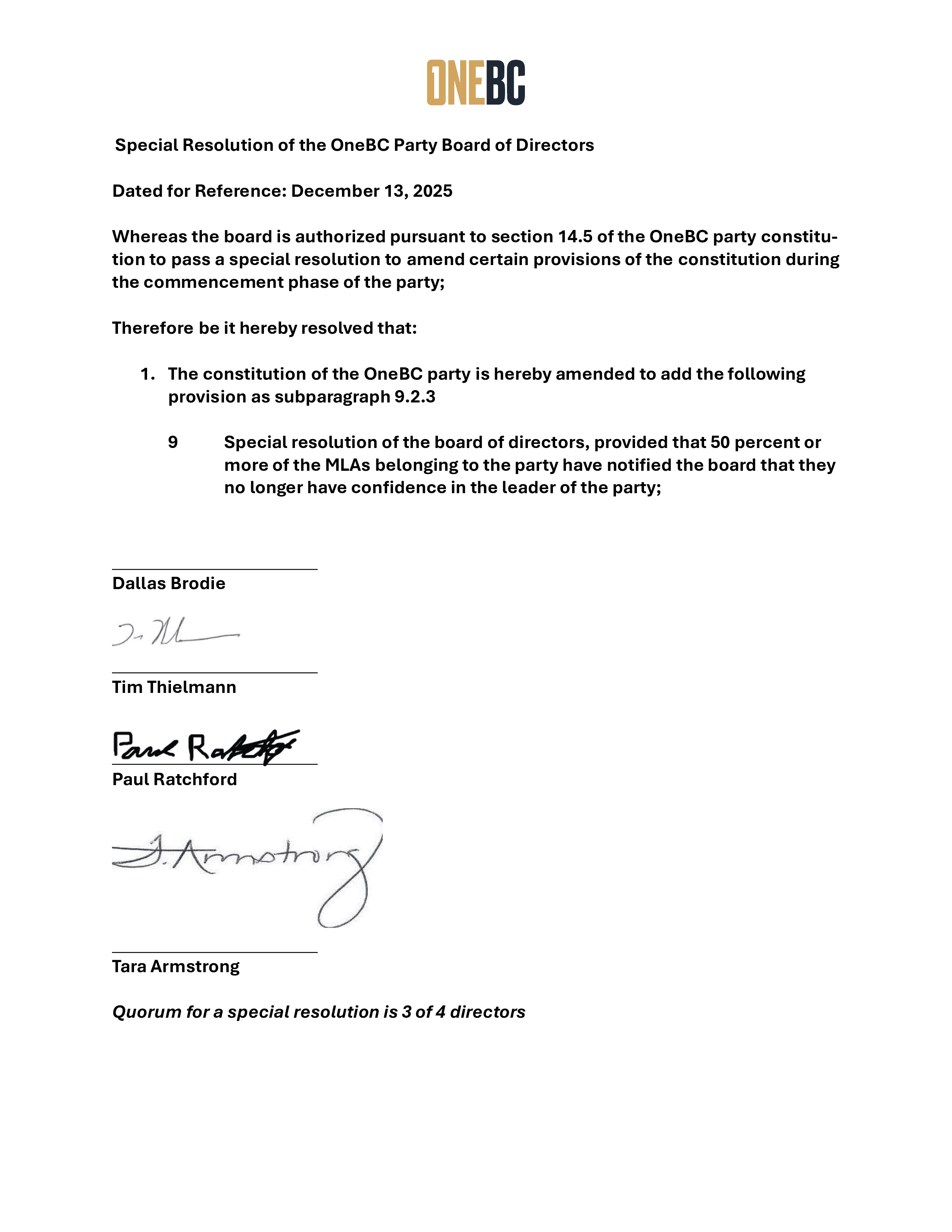 REMOVING DALLAS BRODIE AS LEADER OF ONEBC